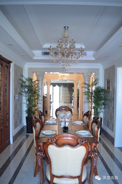 最近位于桐乡巴黎都市一户别墅装修完毕,该房屋业主是位企业家,在设计吊顶的日子里和我们奥盟默契配合,采用欧式风格吊顶设计实际上也是他自身品位体现,同时家居空间更加是充满奢华气息,让人羡慕,下面一起欣赏这户别墅吊顶实景图: