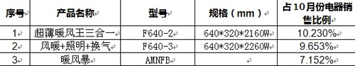 据奥盟制单部10月份统计的数据显示,10月销售前三的取暖电器分别是: