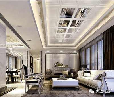 目前的吊顶装修多以欧式为主,华贵、浪漫是其最大的特点。线条多是弧形或波浪形的,能增加动感,减少呆板的感觉。此外欧式华丽吊顶在线板处理上十分追求精致繁复。