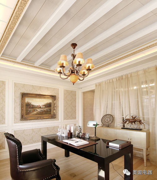 书房吊顶:装饰简洁清雅的书房,延伸着我感性的触角。在这个灵性的空间里,把我孤独的灵魂放飞。
