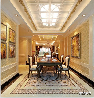 厨房吊顶:西斯廷圣母在油画里流光溢彩,异域风情盘旋天花板,留一方透明,遥想年华的流转。中世纪贵族遗风,融入简约的现代质感,在银烛吊灯里,轻轻荡漾。