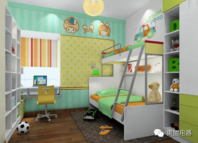说到儿童房,因为目前还不知道家里会多个男孩还是女孩,亦或是两个小孩。所以,他认为房间里采用上下床最保险,哈哈。为孩子健康成长着想,房间颜色一定要明快活泼,还要有充分的玩耍空间。