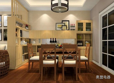 餐厅区域采用组合柜做隔断,发挥出区分功能空间的作用,还能满足收纳,展示的需求,实用又美观。