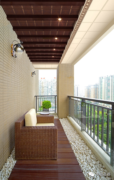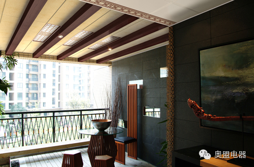 阳台的吊顶采用奥盟明清艺苑边角,渴望心与自然的距离一再接近。
