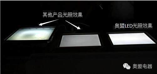 通过对比可以看到,奥盟这款LED照明光照效果非常好,光线非常柔和,并且不漏光不散光,光线的利用率达到98%以上,完全可以满足了客厅,书房,卧室的光照要求。