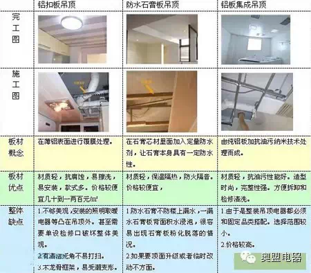看表格一目了然,如果你要选便宜的那肯定是铝扣板吊顶或者防水石膏板吊顶。但如果从性能和售后以及整体趋势来看,我们就会推荐选择集成吊顶。