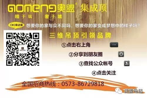 16年积累,让奥盟成长为集成吊顶技术升级换代的集大成者,不仅成为业内首家"三维吊顶"生产企业,更是新一代家居吊顶生活主义倡导者。厚积薄发,奥盟电器将最新的集成吊顶技术投入市场运营,将传统的集成吊顶从厨卫空间扩展到客厅、书房、过道、餐厅等家居吊顶各个角落,不仅带来了丰富的系列产品,更引进了潮流的家居吊顶生活理念,树立了现代家居吊顶生活新标准,真正体现"创新以人为本"的企业理念。