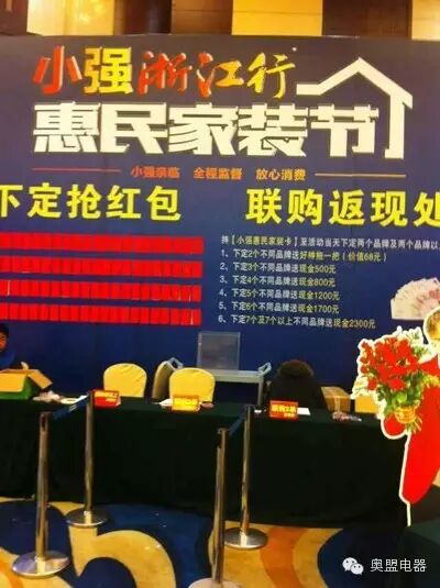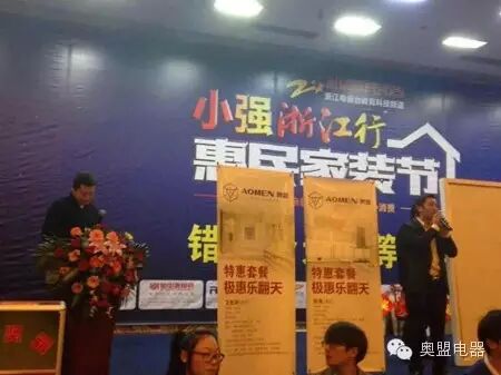 2015年3月14日,海宁海州大饭店内火药味十足,原来“小强浙江行•惠民家装节”大型团购活动于中午12点,在海宁厅火热上演!活动现场,邀请浙江电视台著名主持人小强做品牌监督,“奥盟三维吊顶、世友地板、索菲特衣柜在内的十家品牌”集结于此,演绎一场开年最火爆的抢购盛会。