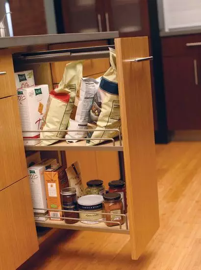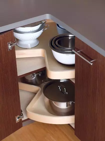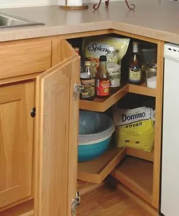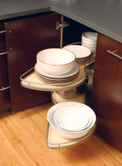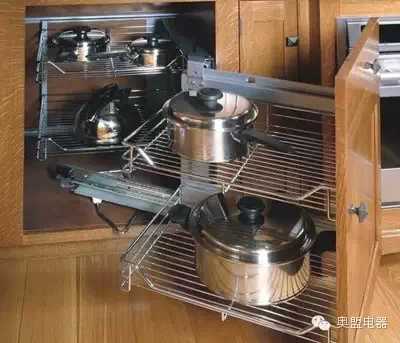 会转弯的金属篮子,能让小橱柜容纳更多东西。