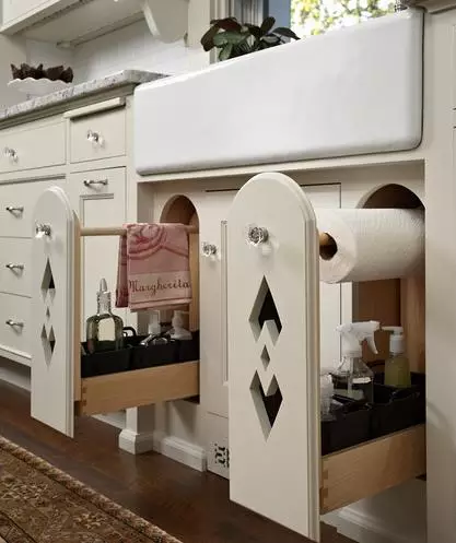 清洁用品、擦手纸、抹布等最适合放在水槽下,方便湿水清洁。