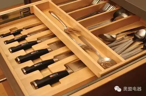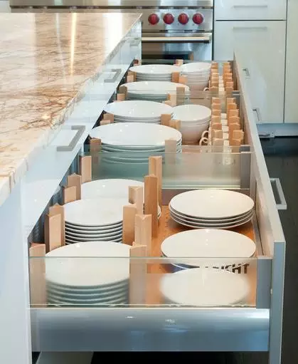 给它们加个固定条,即使用力推拉抽屉碗碟不会晃动。