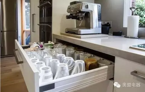 给它们专门一个收纳柜体,各种杯子一目了然,想用哪个用哪个。