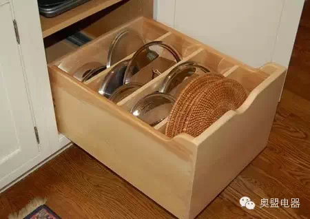 做个专门的锅盖收纳抽屉,让厨房分类更明晰。