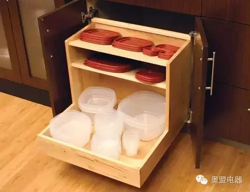 杯子和碗碟容易碎,不适合摆在比较高的吊柜上,料理台下的空间就很适合。