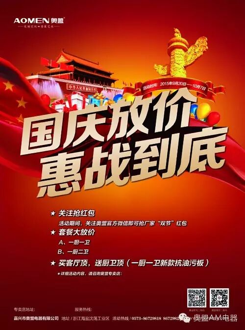 活动期间,关注奥盟官方微信即可抢厂家“双节”红包